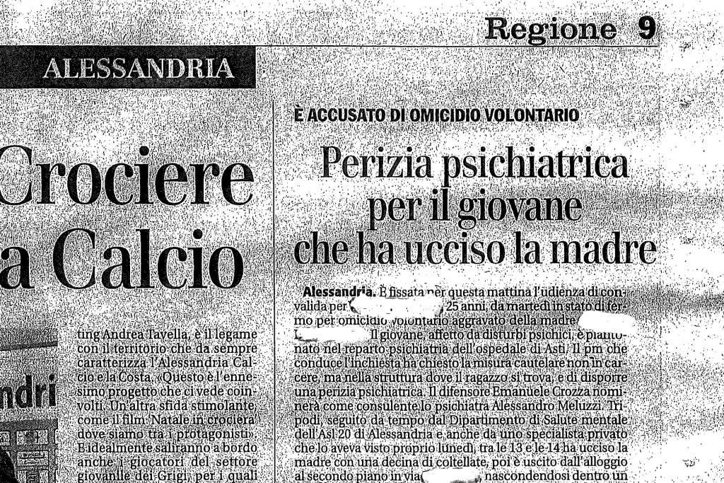 L’Avvocato Emanuele Crozza ha assistito, con l’ausilio del consulente tecnico di parte Prof. Alessandro Meluzzi di Torino, un giovane accusato di aver ucciso la madre. La vicenda si concluse con l’assoluzione dell’imputato.